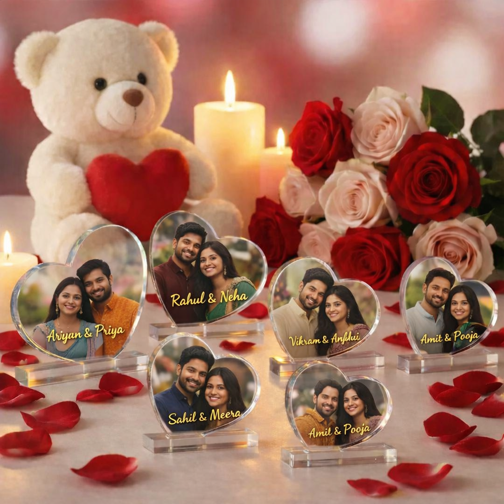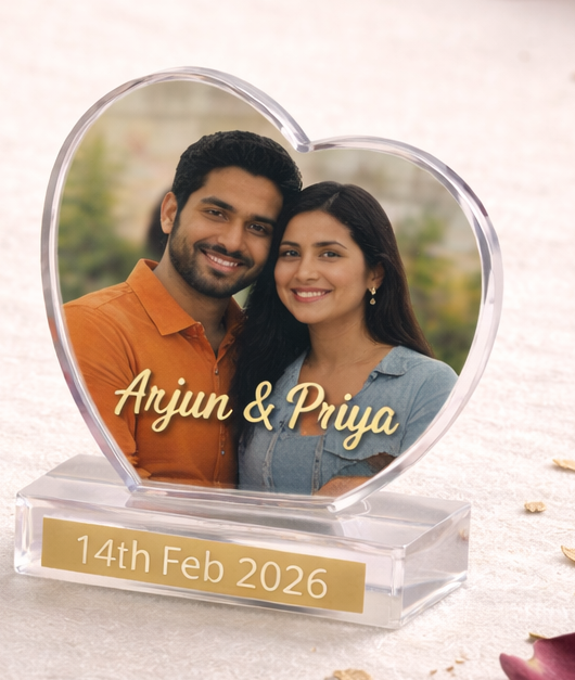 Capture your most precious memories in our Heart-Shaped Personalized Photo Frame, beautifully crafted to celebrate love and togetherness. Designed with a premium clear finish, this frame adds a touch of elegance to any space. Perfect for anniversaries, Valentine’s Day, weddings, or birthdays, it’s a timeless keepsake that speaks straight from the heart.